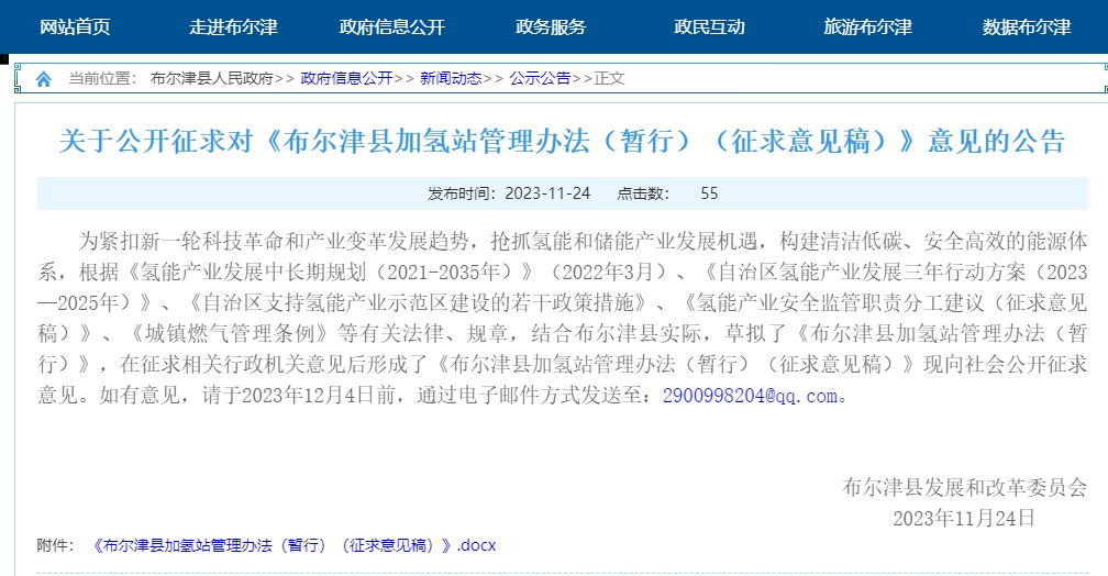 布爾津縣加氫站管理辦法(暫行)(征求意見稿)發(fā)布
