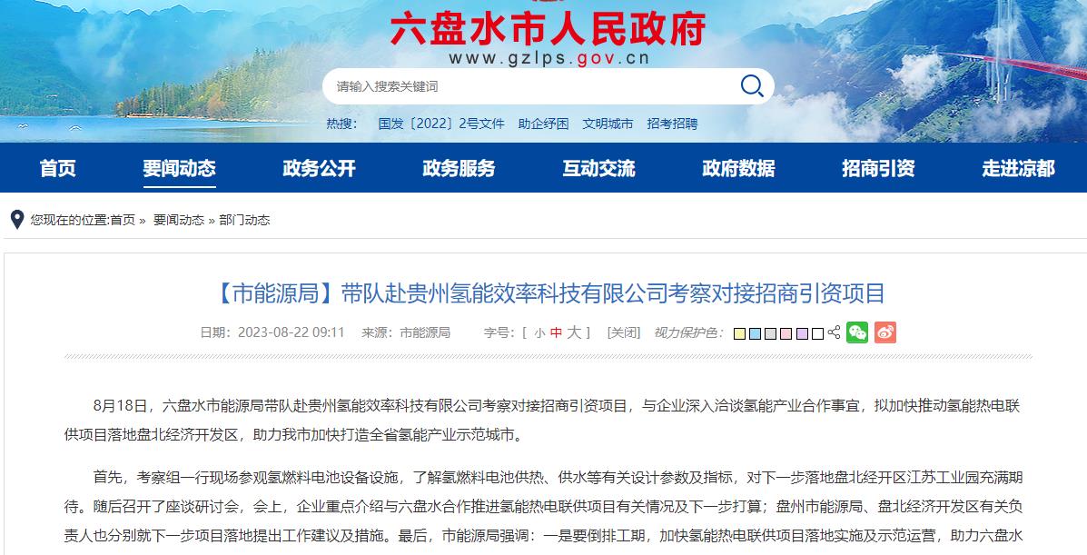 氫啟未來網獲悉,8月18日,六盤水市能源局一行赴貴州氫能效率科技有限公司進行了實地考察,并就招商引資項目進行了深入洽談。此次考察的主要目標是加快推動氫能熱電聯供項目的落地實施,以助力六盤水市打造全省氫能產業示范城市。參與此次考察的還包括盤州市能源局、盤北經濟開發區貴州榮信能源發展公司以及市能源局的相關科室負責人,貴州氫能效率科技公司的有關部門負責同志和具體項目負責人也參加了此次考察。