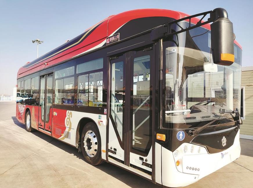 在海勃灣區綜合能源加注站,烏海金財特來電新能源有限公司的幾名工作人員正在對一輛海易通銀隆氫燃料電池公交車路試車進行行車性能測試。一座撬裝式加氫站為汽車提供氫能,由烏海金財特來電公司與烏海化工公司合作建成,該加氫站氫氣加注量為500kg/天,可同時滿足50輛氫燃料電池公交車加氫需求。春節前,預計有15輛氫燃料電池公交車運達我市。